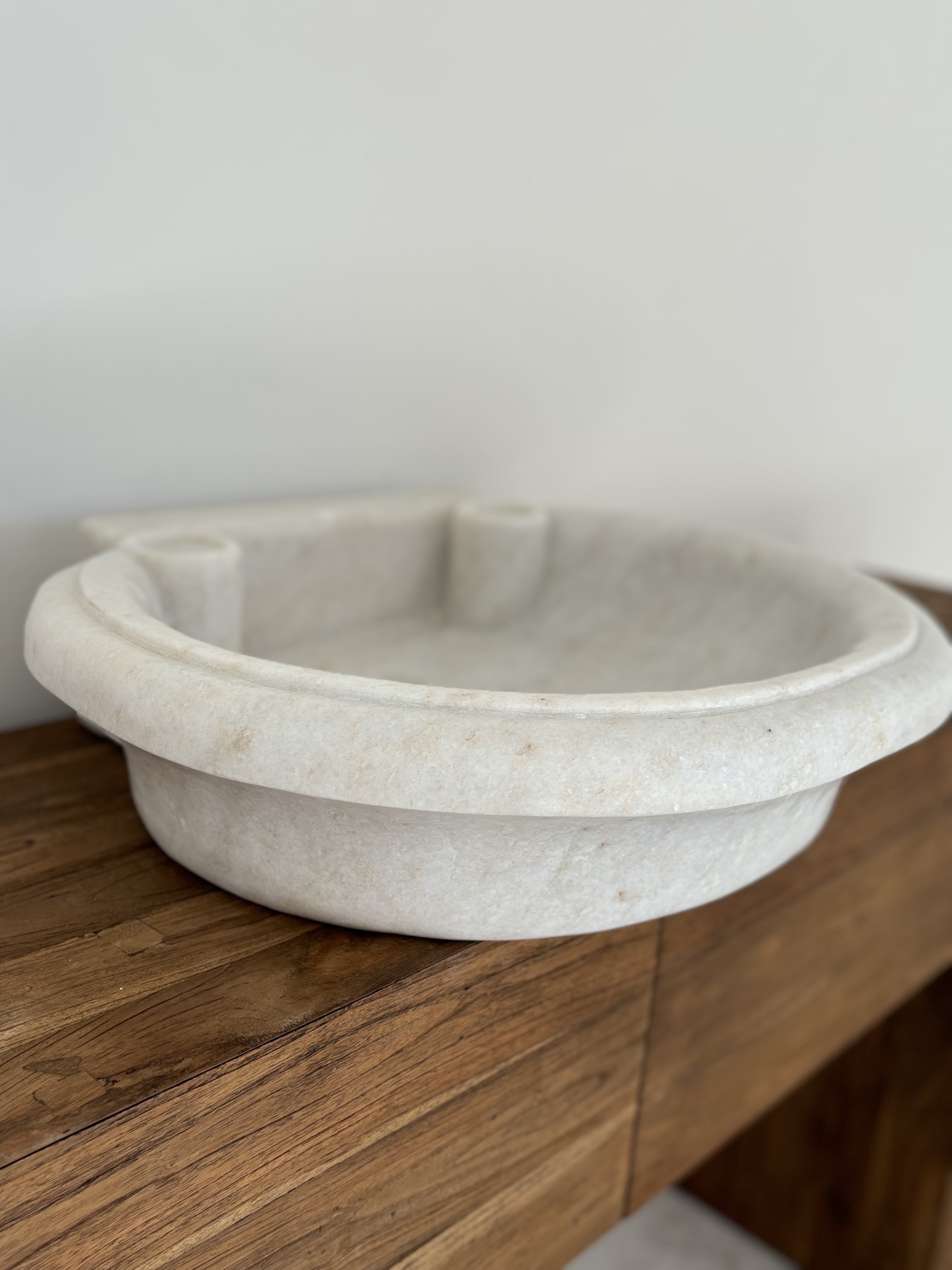 The Eshana Carved Marble Basin is a stunning white marble oval basin, exquisitely detailed with elegant scrollwork that adds a touch of refined artistry to any bathroom. Its medium size makes it versatile, fitting seamlessly into a variety of bathroom layouts while serving as a sophisticated centerpiece. Crafted from natural marble, each basin boasts unique veining and patterns, ensuring that no two pieces are alike. This basin combines timeless beauty with practical design, elevating your bathroom space with both function and distinctive style.