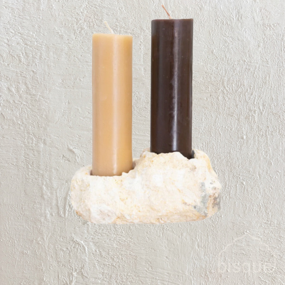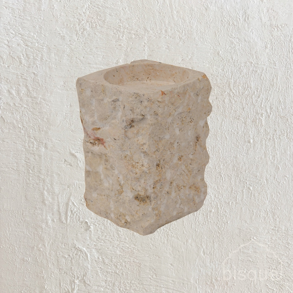 An evocative collection of candleholders, handcrafted from materials such as onyx, fossilised coral, wood, marble, and ceramic. Each piece is selected for its ability to bring warmth, texture, and quiet sophistication to any setting.