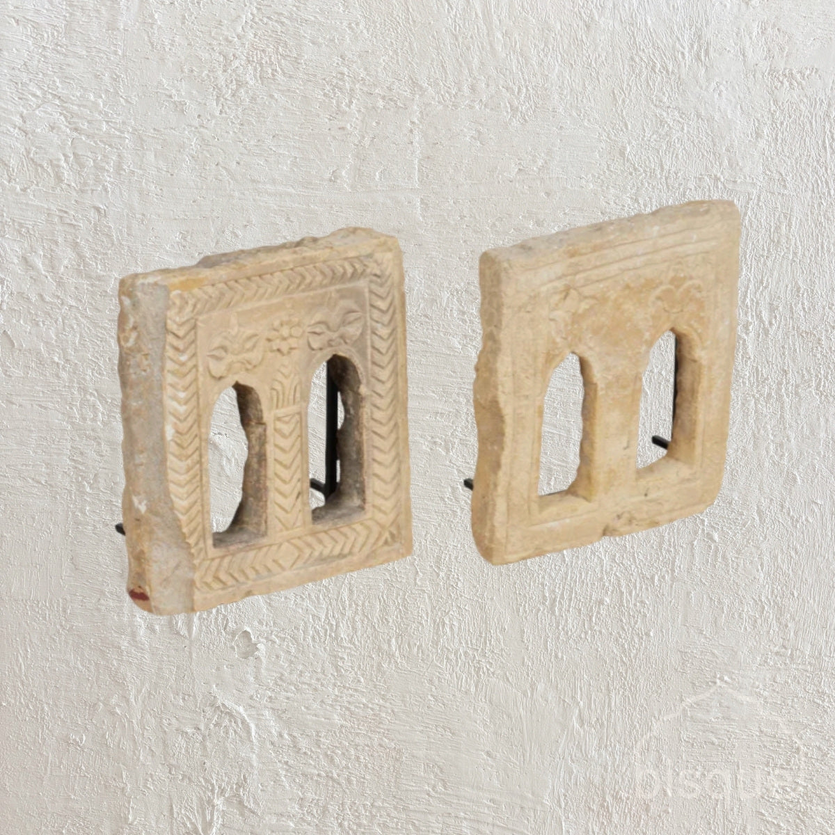 The Mewan Stone Candle Stands are genuine old Indian allas, sections from old buildings. They are wall mountable. (White & Natural)