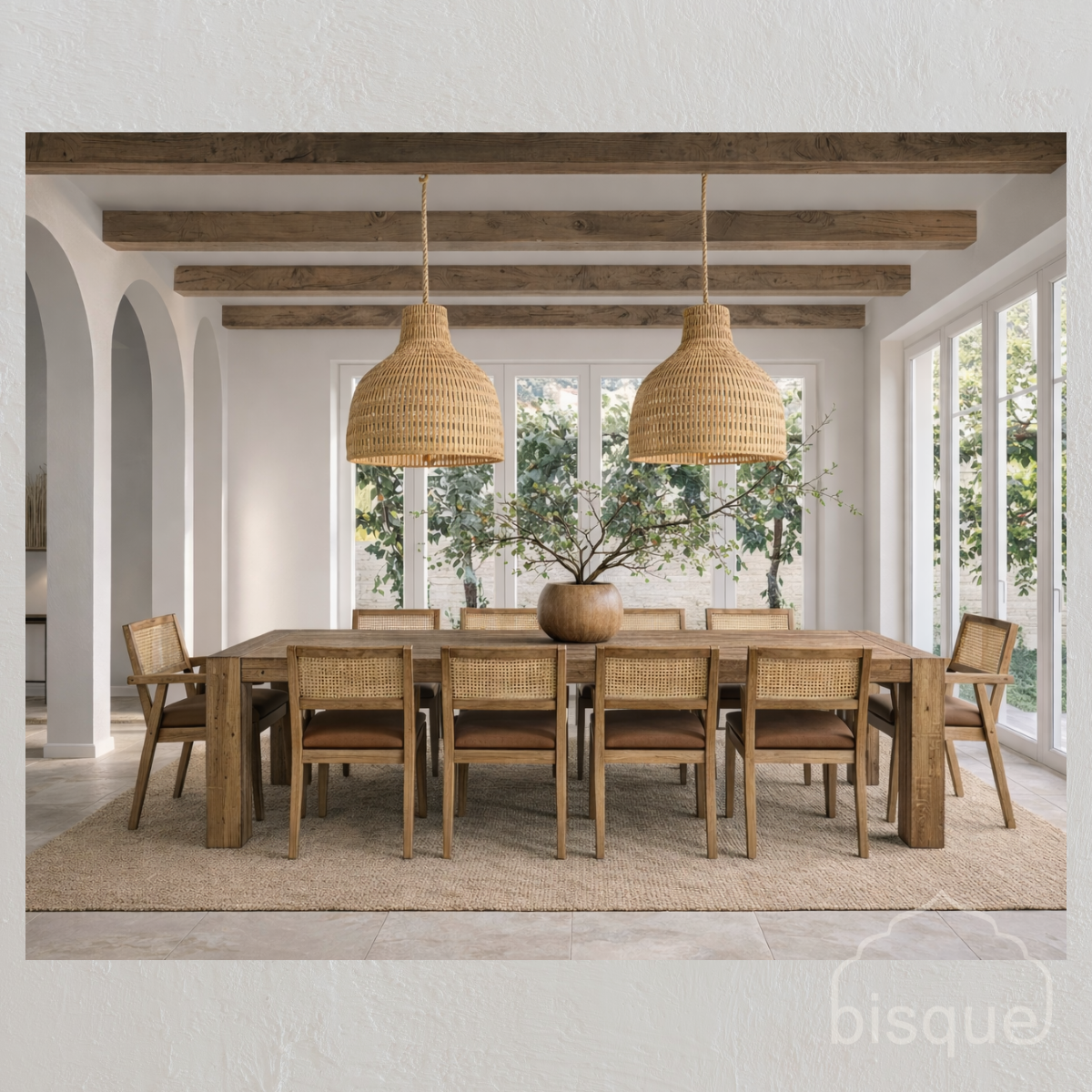 Featured with the Jacob 2.7m recycled dining table and Keeya rattan pendants.