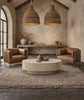 We have paired these occasional chairs up with our largest Agung pendant lights and our Elena GRC oval coffee table.