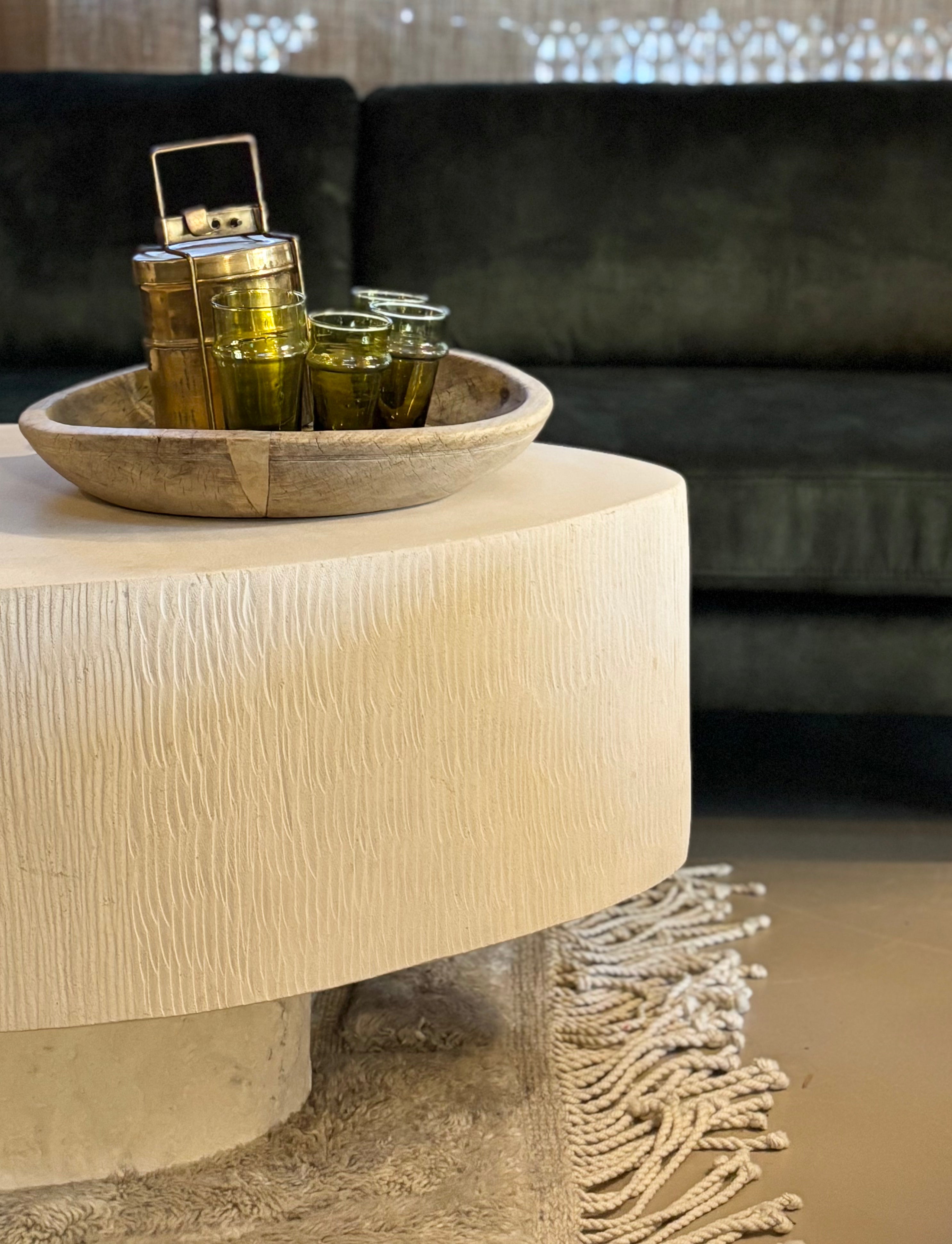 The Elena is an elegant oval coffee table built from fibreglass reinforced concrete with a cream coloured rough stone finish. Ideal for indoor or outdoor use.