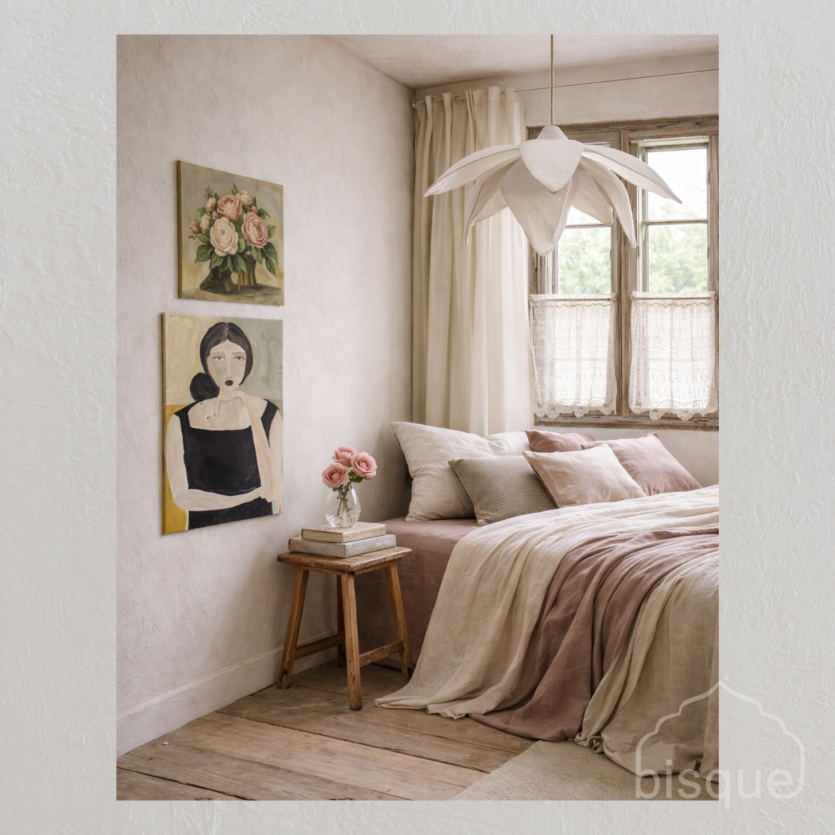 We have styled this pretty bedroom up with our Danso pendant light and a Kathy Brauer original painting 40 x 50 acrylic on canvas $1200.