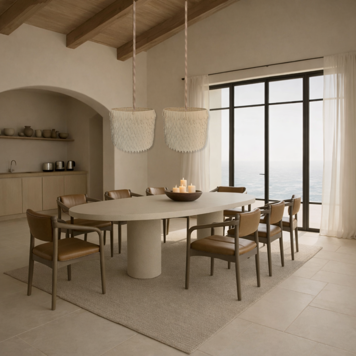We have styled this stunning dining room project using our Granata table, Nsombe lights and Buono chairs.