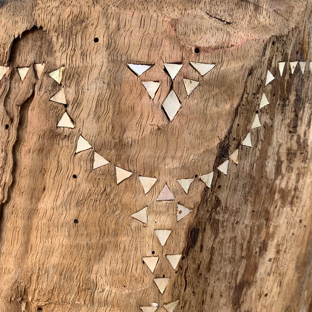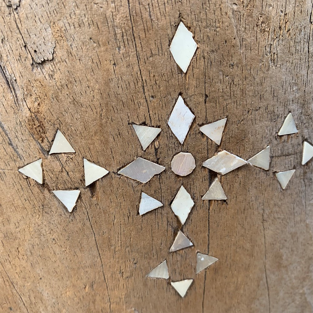 Antique grinder pots decorated with mother of pearl. Sold separately