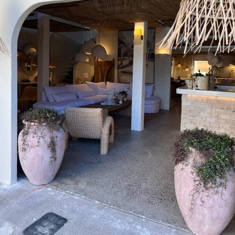 The Akeyo Large Terracotta Pot showcases a sophisticated Mediterranean-inspired design, featuring a dusty pink washed finish that adds subtle warmth and elegance. Measuring 60cm in diameter and 80cm in height, this generously sized pot is perfect for creating a striking focal point in any indoor or outdoor space. Its earthy terracotta material combined with the soft pink hue offers a refined yet natural aesthetic, ideal for housing lush plants or standing alone as a decorative statement. The Akeyo pot effortlessly blends timeless craftsmanship with contemporary style, enhancing your décor with understated charm.