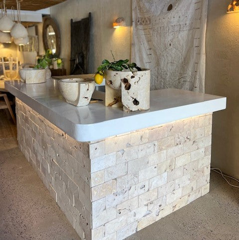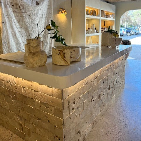 These tiles are made of fossilised coral, creating a soft, organic look when laid.