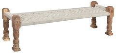 Acacia Wood & Cotton Charpoi Bench Seat. Hand crafted in India.