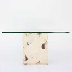 The Bukoko Square Side Table features a striking base crafted from fossilised coral, showcasing natural textures and intricate patterns that make each piece unique. Topped with a sleek tempered glass surface, this table combines organic beauty with modern elegance. Its sophisticated design adds a refined touch to any living space, offering both durability and style. Perfect as a statement accent or functional side table, the Bukoko brings timeless artistry and contemporary charm to your home.
