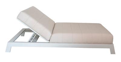 The Bite Lounger Double combines sleek aluminium framing with luxurious white Sunbrella fabric, offering both durability and refined comfort. Its clean lines and elegant white legs create a sophisticated outdoor seating experience, perfect for stylish relaxation.
