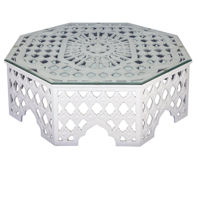 The Camilla Carved White Coffee Table serves as an elegant focal point, showcasing detailed craftsmanship paired with a refined design. Its octagonal form, measuring 120cm across and 38cm tall, provides ample surface space ideal for both decorative and practical purposes. The intricate wood carvings add depth and character, while the smooth glass top offers a polished finish that accentuates the artistry below. Combining timeless elegance with modern flair, this sophisticated table enhances any stylish living area with grace and distinction.