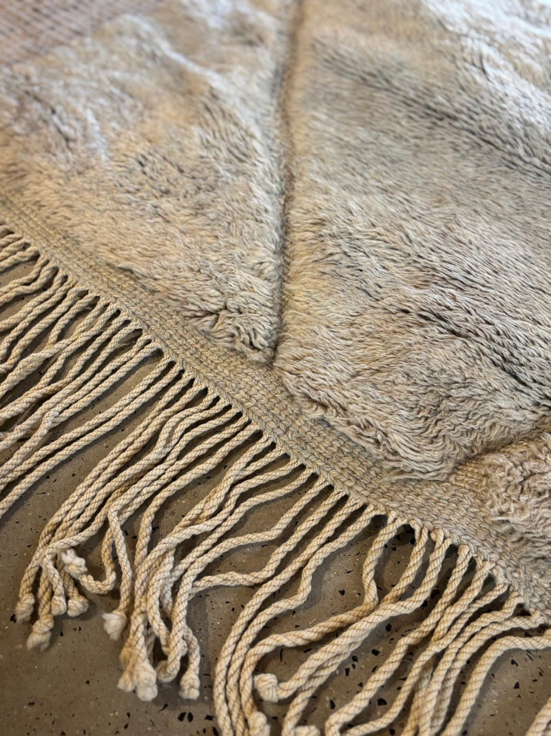 Discover the elegance of Moroccan artistry with Bisque's carefully chosen Berber rug, measuring 3.5m by 2.5m. Crafted from 100% organic sheep's wool, this taupe rug brings a soothing richness to your living space. It beautifully blends contemporary design with timeless craftsmanship, creating a refined foundation for your décor.