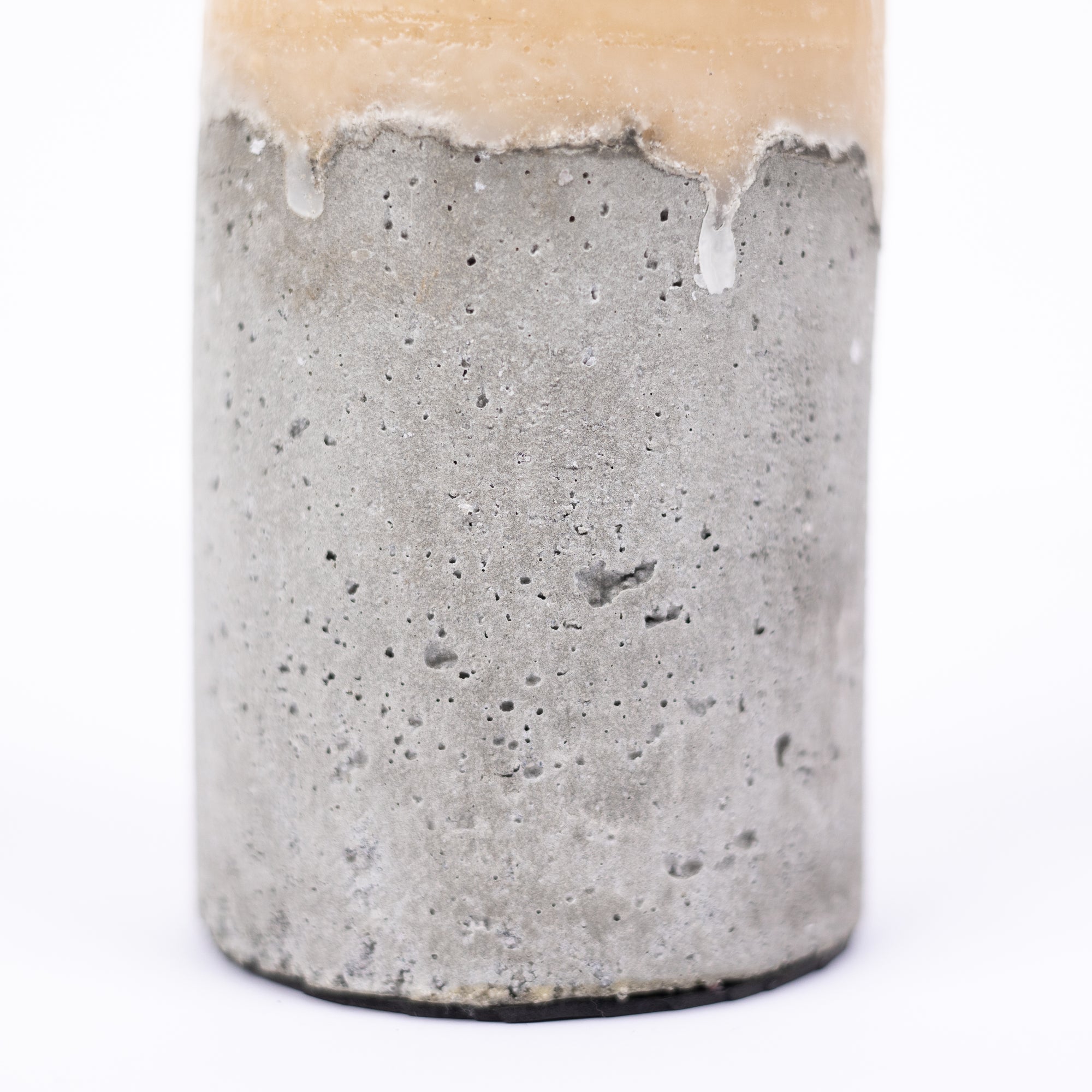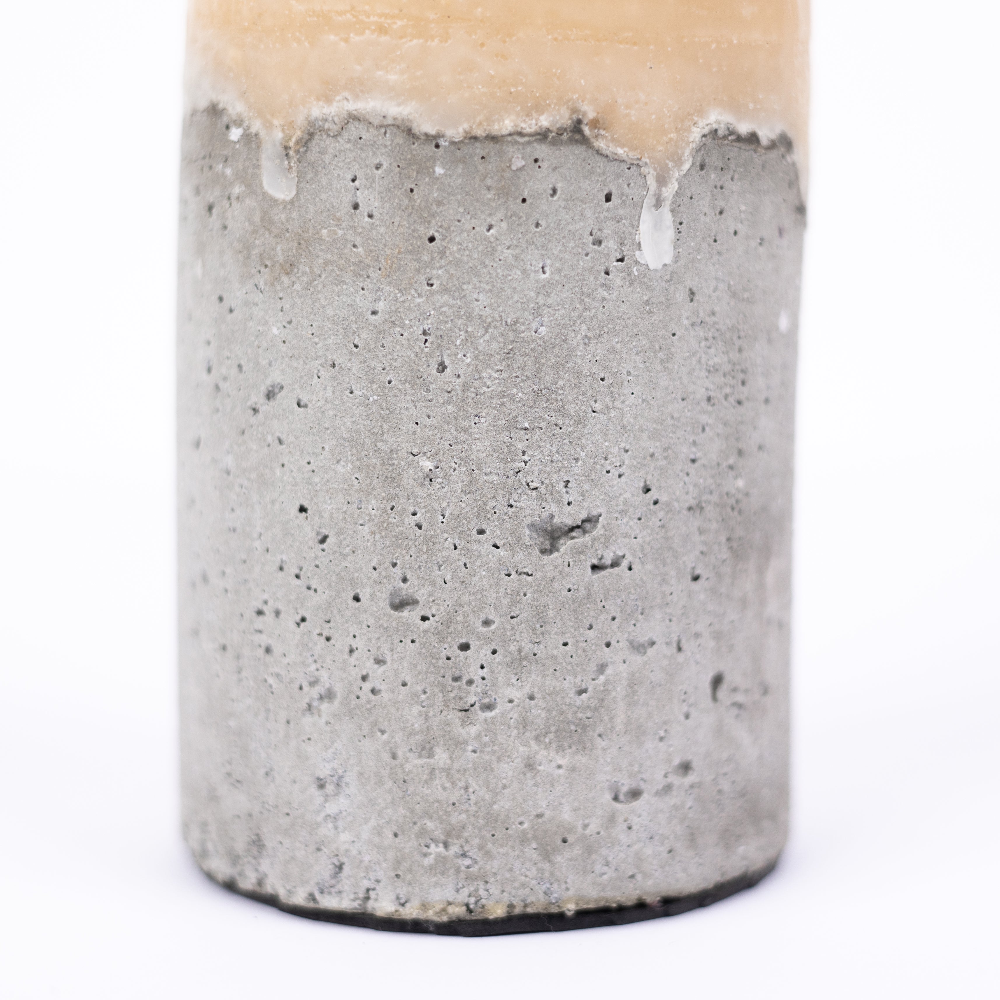 Create ambiance with this sophisticated candle, featuring a raw cement base that adds an industrial yet refined touch to any space. The candle is crafted with a smooth beige wax blend, offering a warm and inviting glow. Its natural wood wick enhances the sensory experience by producing a gentle crackling sound as it burns, creating a cozy atmosphere. Available in two sizes, this candle is perfect for accentuating your décor or gifting to someone with an appreciation for understated elegance.