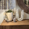 The Kono candleholder features a modern double U design crafted from ceramic with an off-white glazed finish, blending contemporary style with timeless elegance. Designed to hold up to two candles, it measures 24cm in length, 5cm in width, and 24cm in height, making it a striking centerpiece for any room. Its sleek silhouette and subtle glaze create a sophisticated ambiance, perfect for enhancing both minimalist and classic interiors with a touch of refined warmth.