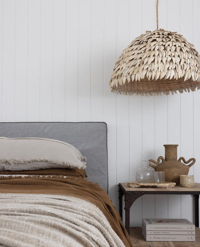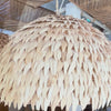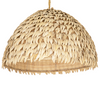 The Sade Coconut Dome Pendant Light showcases expert craftsmanship with its rattan dome intricately layered with delicate coconut slithers, creating a textured and elegant design. Measuring 70 cm in diameter and 50 cm in height, and weighing 8 kg, it offers a substantial yet refined presence. Its natural materials emit a warm, inviting glow that enhances any interior with a sophisticated, organic ambiance. A smaller version is also available, ideal for intimate spaces or layered lighting schemes.