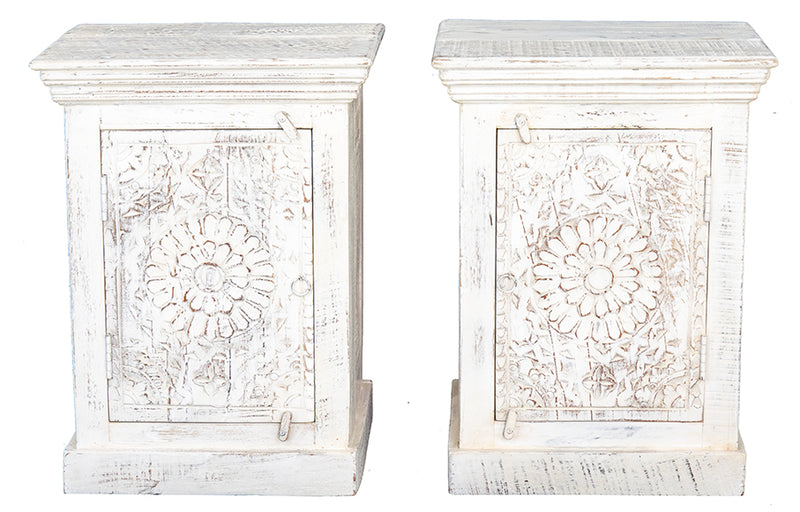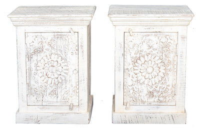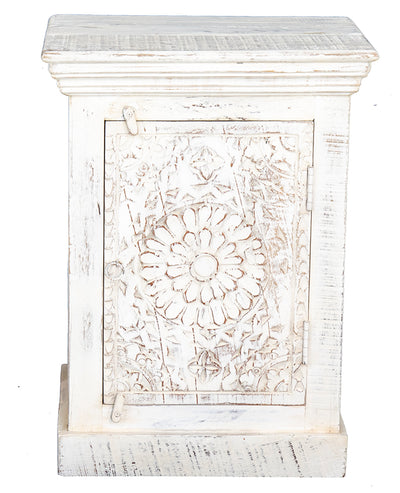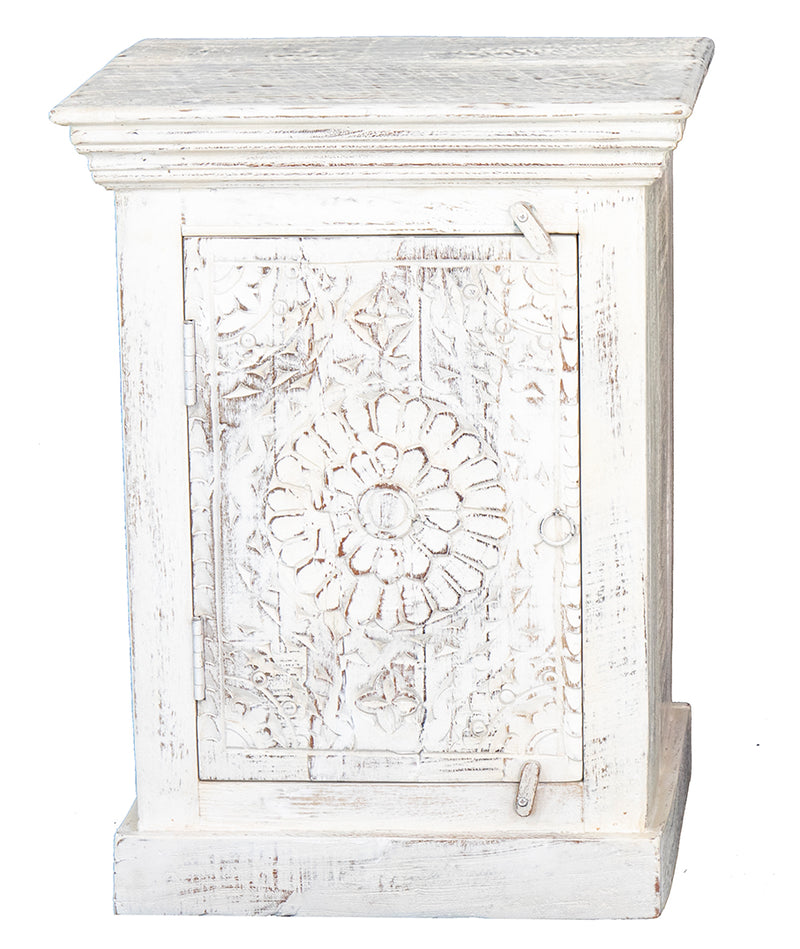 Elevate your bedroom with the MAGDA Indian wooden bedside cabinet, expertly crafted and finished in a subtle whitewashed tone that complements a variety of interiors. This elegant piece features a single door with a right-hand opening, offering practical storage while maintaining a refined silhouette. Measuring 49cm wide, 38cm deep, and 65cm high, it provides ample space for bedside essentials without overwhelming your room. The natural wood grain subtly visible beneath the whitewash adds texture and warmth, making MAGDA a sophisticated addition to your living space that blends traditional craftsmanship with contemporary style.