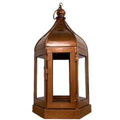 Antique Indian Metal Lantern, Rose Copper Finish. Perfect for use as a candleholder.