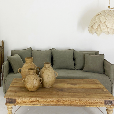 Cotton 3 Seater Sofa, Taupe. Modern style 3 Seater sofa with single slip cover. Includes 6 back cushions. Medium to Firm Density.