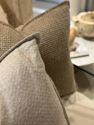 Our own luxe cushion collection. Designed by Bisque, these cushions are made of the most exquisite raw, textured silks or slub linens. Each one is woven in to the most incredible fabrics that are elegant yet raw in appearance. The edges all feature delicate hand stitching details. Featuring all the natural shades, these cushions are unbelievably soft to touch.