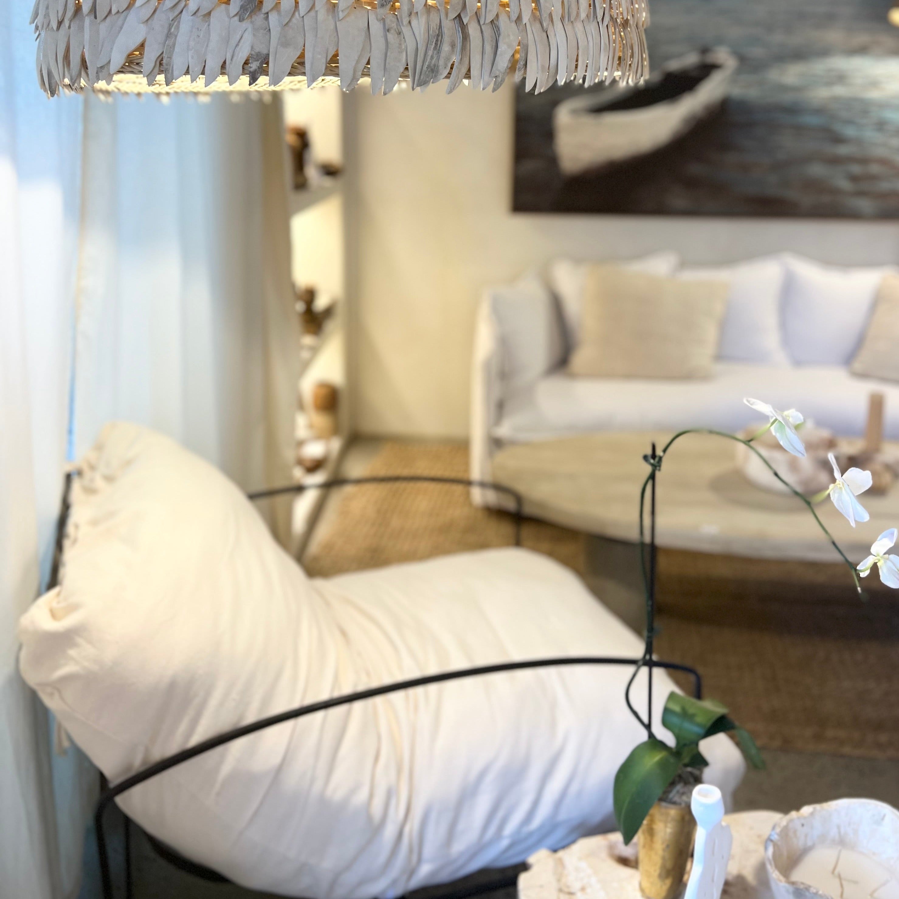 Experience refined comfort with the Taye Chair, featuring a forged metal frame shaped into elegant, soft curves that blend strength with style. Its large, cloud-like cushion in warm white invites you to relax in luxury, offering exceptional comfort for any occasional seating need. Measuring 80cm wide, 95cm deep, and 67cm high, this chair combines sculptural design with plush support, making it a sophisticated addition to your living space or lounge area. The Taye Chair effortlessly balances aesthetic appeal with cozy functionality, perfect for those who appreciate understated elegance.