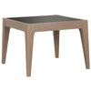 This contemporary side table features an MDF timber frame topped with sleek black glass. It measures 60cm by 60cm and stands 45cm tall, offering a stylish and functional addition to your living space.
