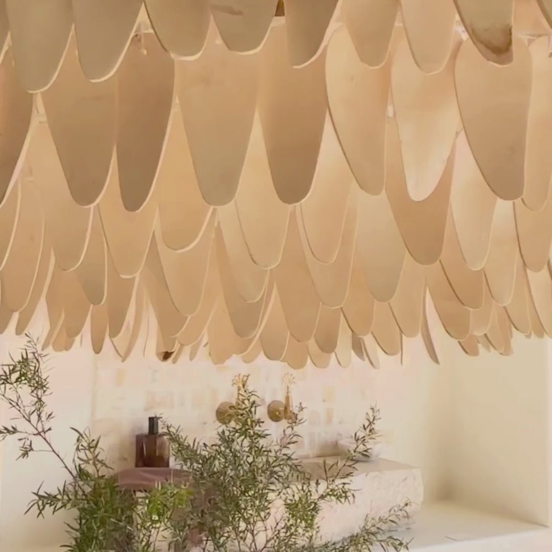 The Niri is an exquisite pendant light crafted from authentic coconut shells, showcasing a design inspired by the intricate form of a sea urchin. This piece combines artistry with sustainability, using recycled materials to create a striking yet eco-conscious lighting solution. Its natural textures and elegant silhouette bring a refined organic element to any interior, enhancing spaces with warm, ambient illumination. Measuring 850mm in diameter and 400mm in height, the 'NIRI' light is a sophisticated statement that harmonises environmental responsibility with timeless style.