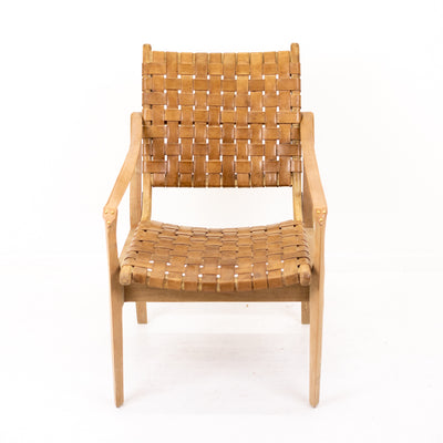 The Sienna Strap Leather Chair in antique brown is a sophisticated blend of durability and timeless design. Crafted from high-grade tan leather, this occasional armchair offers a luxurious feel while ensuring long-lasting quality. Its sturdy acacia wood legs provide a solid foundation, complementing the rich leather straps that define its elegant silhouette. Measuring 60cm wide, 72cm deep, and 87cm high with a seat height of 38cm, the Sienna chair is perfect for adding a refined touch to any living space or study, combining comfort with enduring style.