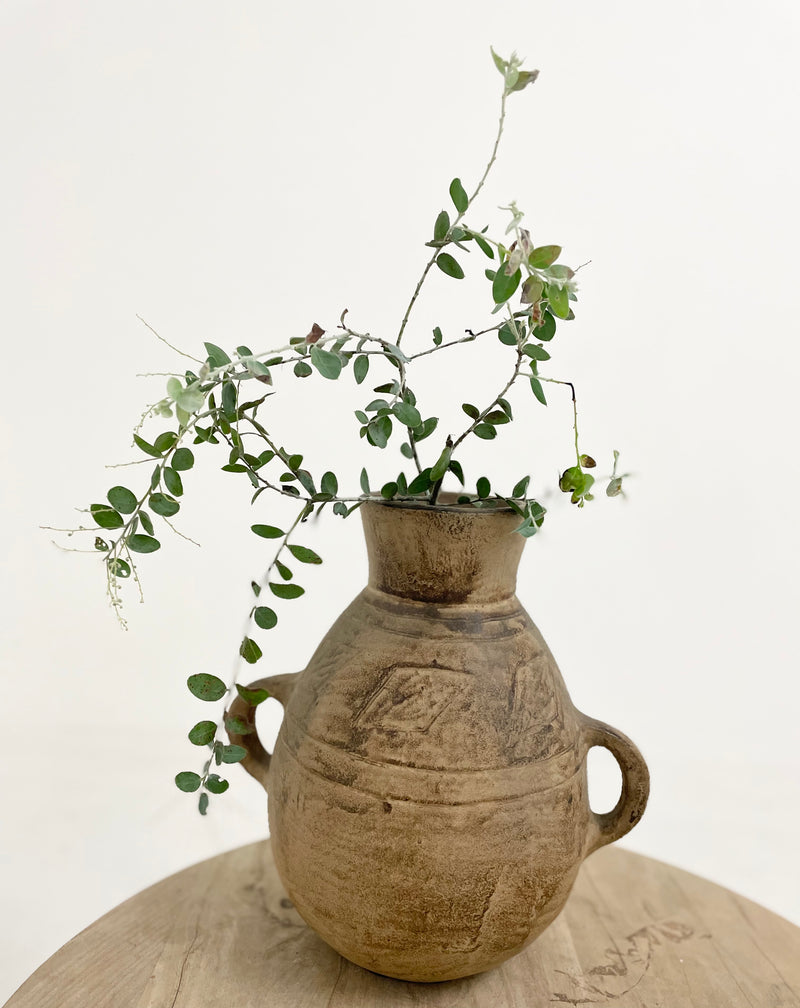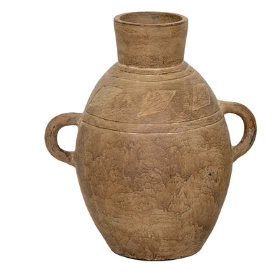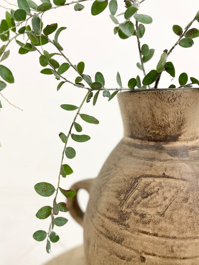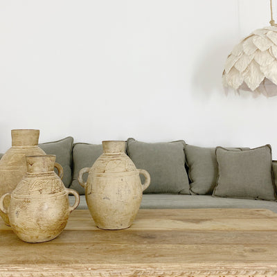 The 'Apiyo' Jug, crafted from antique terracotta-coloured clay, embodies timeless Mediterranean elegance with its classic double-handle design. Available in three sizes, this versatile jug combines aesthetic appeal with practical functionality, making it ideal for serving or as a decorative accent. Its warm, earthy tones and handcrafted finish bring a sense of history and artisanal craftsmanship to any setting. Whether displayed as a centerpiece or used for everyday purposes, the 'Apiyo' Jug adds a refined, sophisticated touch to your home décor, seamlessly blending tradition with contemporary style.
