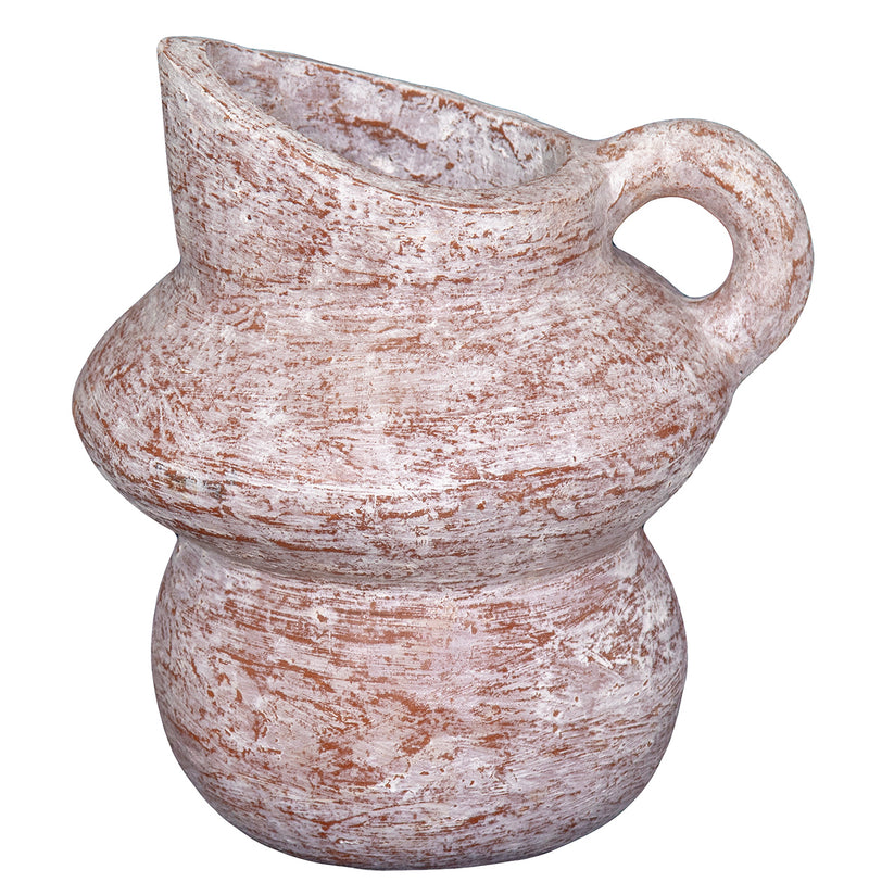 The Mona Terracotta Jug is a large, single-handled vessel handcrafted in Indonesia, showcasing an organically shaped form that highlights its artisanal origins. Finished in a subtle whitewashed color, this jug brings a soft, natural elegance to any space. Measuring approximately 30cm in diameter and 37cm in height, with slight variations due to its handmade nature, it serves as both a functional piece and a sophisticated decorative accent. Its timeless design and earthy tones make it a versatile addition, perfect for enhancing interiors with understated beauty and cultural authenticity.