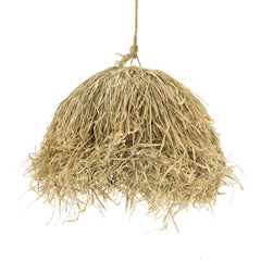 The Tumo pendant showcases a striking dome shape meticulously crafted from shaggy raffia. Measuring 75cm in diameter and 80cm in height, this elegant fixture introduces a natural texture and sculptural presence, elevating the ambiance of any room with refined, organic charm.