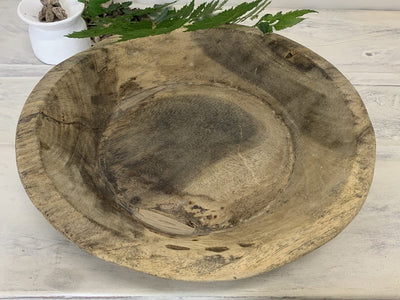 The Partun Wooden Parat features a bleached finish and measures 40cm in diameter by 10cm in height. Handcrafted by skilled artisans, each piece displays unique variations in design, pattern, and color, which add to its charm and are embraced as part of its distinctive beauty rather than imperfections.